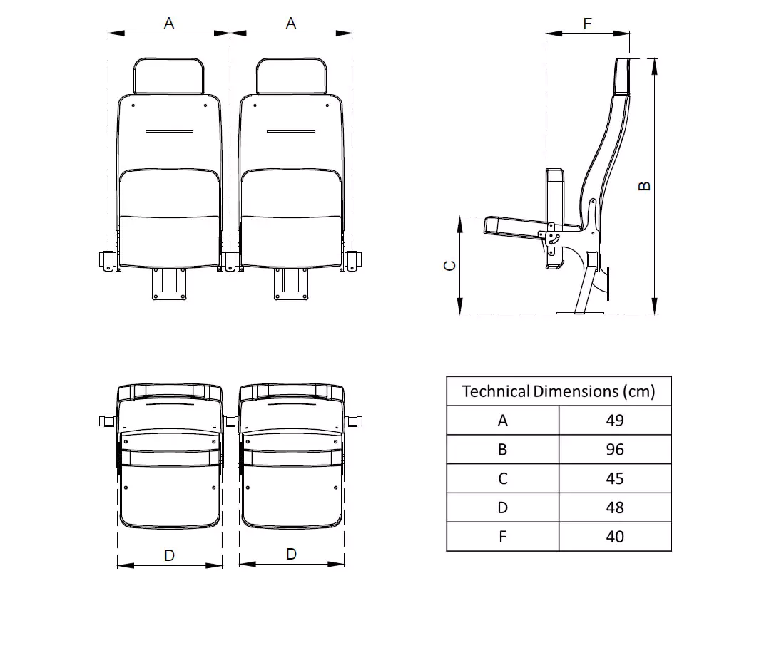 DIAMOND 1 Designed for open-air stadiums, this VIP seat includes a protective hood and water-resistant upholstery. It offers elite spectators both comfort and coverage. A signature look for exclusive seating zones.