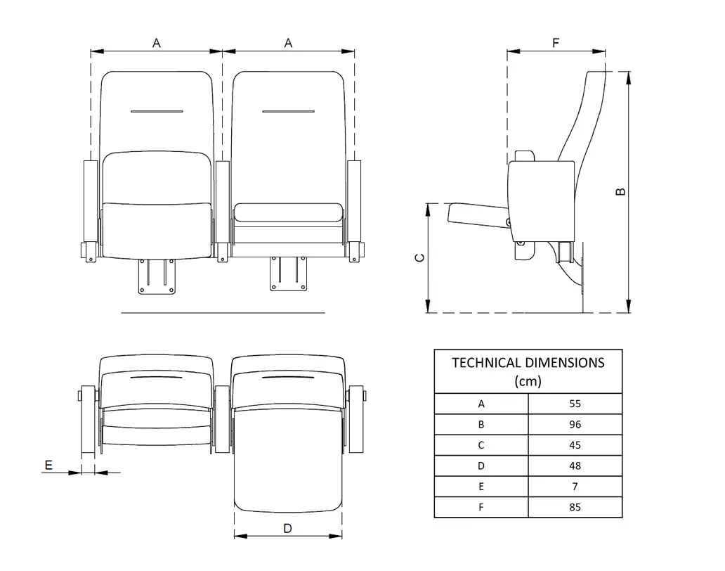 DIAMOND 2 This upholstered VIP seat includes padded armrests, a high back, and custom embroidery options. Ideal for executive boxes and special viewing areas. Combines luxury with functionality.